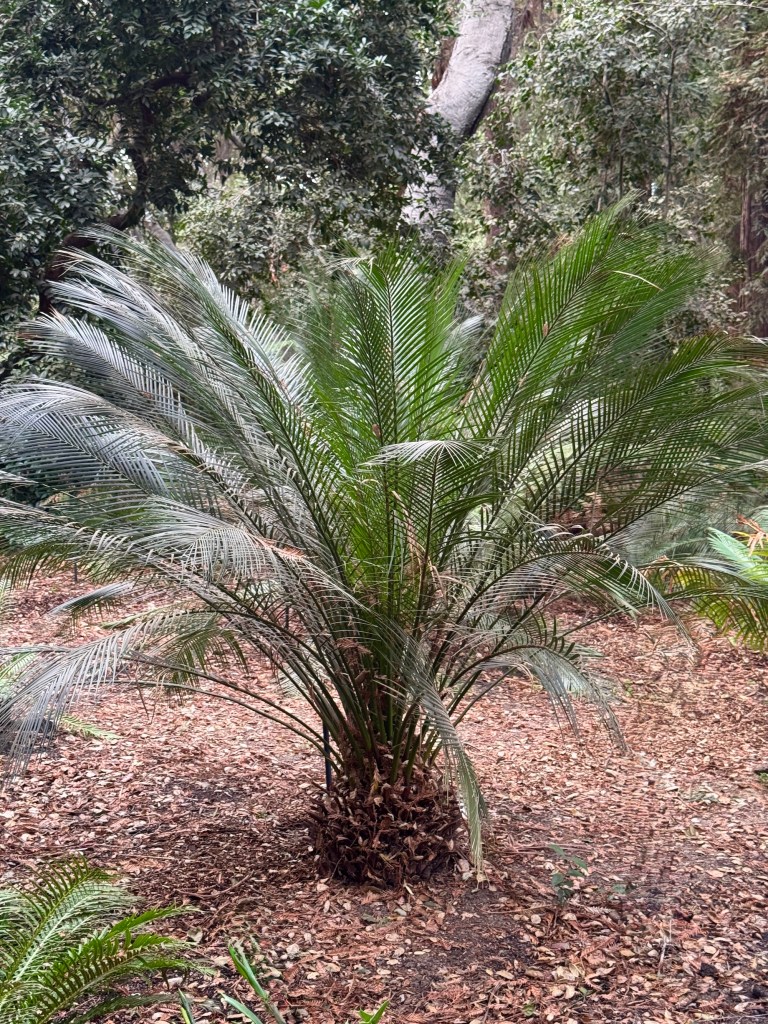 My interest in cycads grew out of the many visits I have made to two major botanical gardens in Southern California that I return to again and again: Descanso Gardens and the Huntington. While The Huntington features a world-renowned, massive scientific collection of over 1,500 plants sprawling across a specialized hillside Cycad Walk, Descanso Gardens offers a boutique, immersive “Ancient Forest” experience that replicates a prehistoric Jurassic environment beneath a canopy of redwoods. Both are really excellent to walk through. And these collections, unlike most museum encounters you might encounter with ancient life (i.e. dinosaur bones), consist of live plants you can actually walk among and touch.