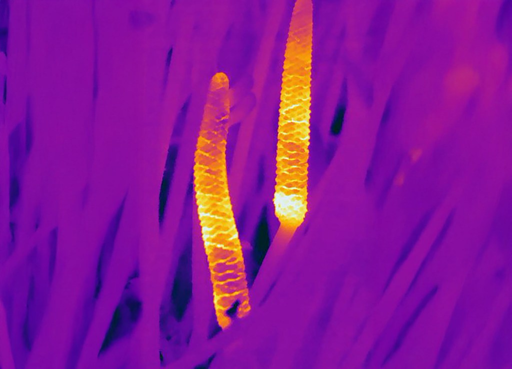 The Times piece explains that cycads attract insect pollinators not through color or flowers, but by heating their cones at dusk and emitting infrared radiation. The process is known as thermogenesis and its rare in plants. (It turns out the female Skunk Cabbage, for example, warms up to melt away snow in the winter.) Specialized beetles, equipped with infrared-sensing antennae, detect this warmth and are guided from male cones to female cones (more on this in a sec) in a precisely timed sequence that ensures pollination. The relationship is so ancient, stretching back hundreds of millions of years, that some researchers now suspect heat-based signaling may lie at the very foundation of pollination, long before flowers evolved petals, color, and scent. However, this is controversial.